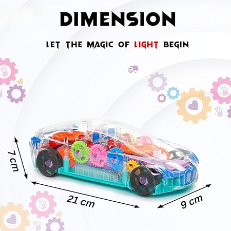 ADDY TOYS Car Toy with Musical Sound Effect & 3D Lights| Educational Transparent Concept Gear Car|360° Rotation Toy-Bump N’ Go Action Vehicle-Multicolor|3xAA Battery Not Included|Pack of 1|